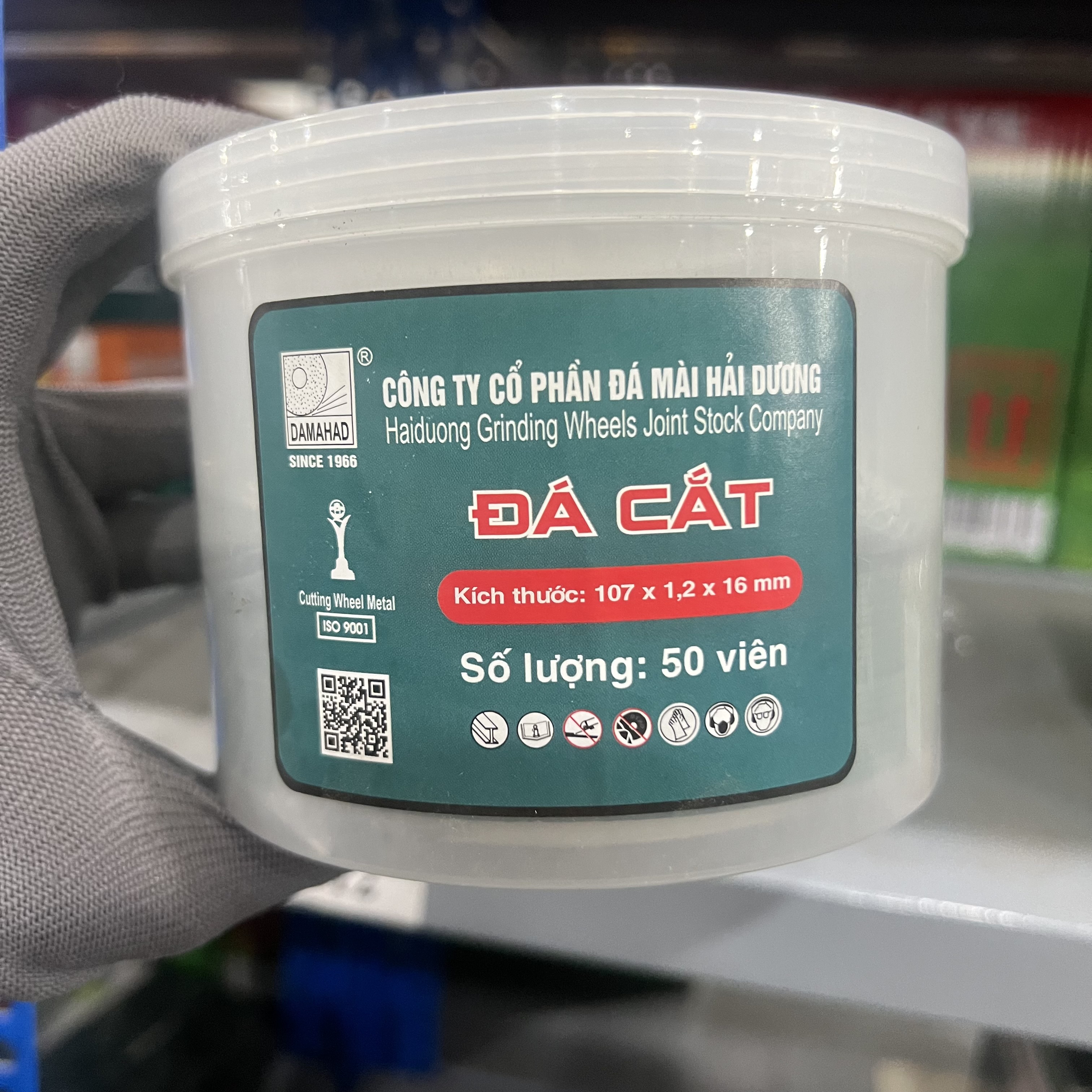 Đá Cắt Inox/Sắt (Màu Xanh) Hải Dương - 107x1.2x16 là niềm tự hào của ngành vật tư tiêu hao Việt Nam. Được sản xuất bởi Công ty Cổ phần Đá mài Hải Dương - thương hiệu lâu đời và uy tín nhất tại thị trường trong nước, sản phẩm này được mệnh danh là dòng đá cắt "quốc dân".
