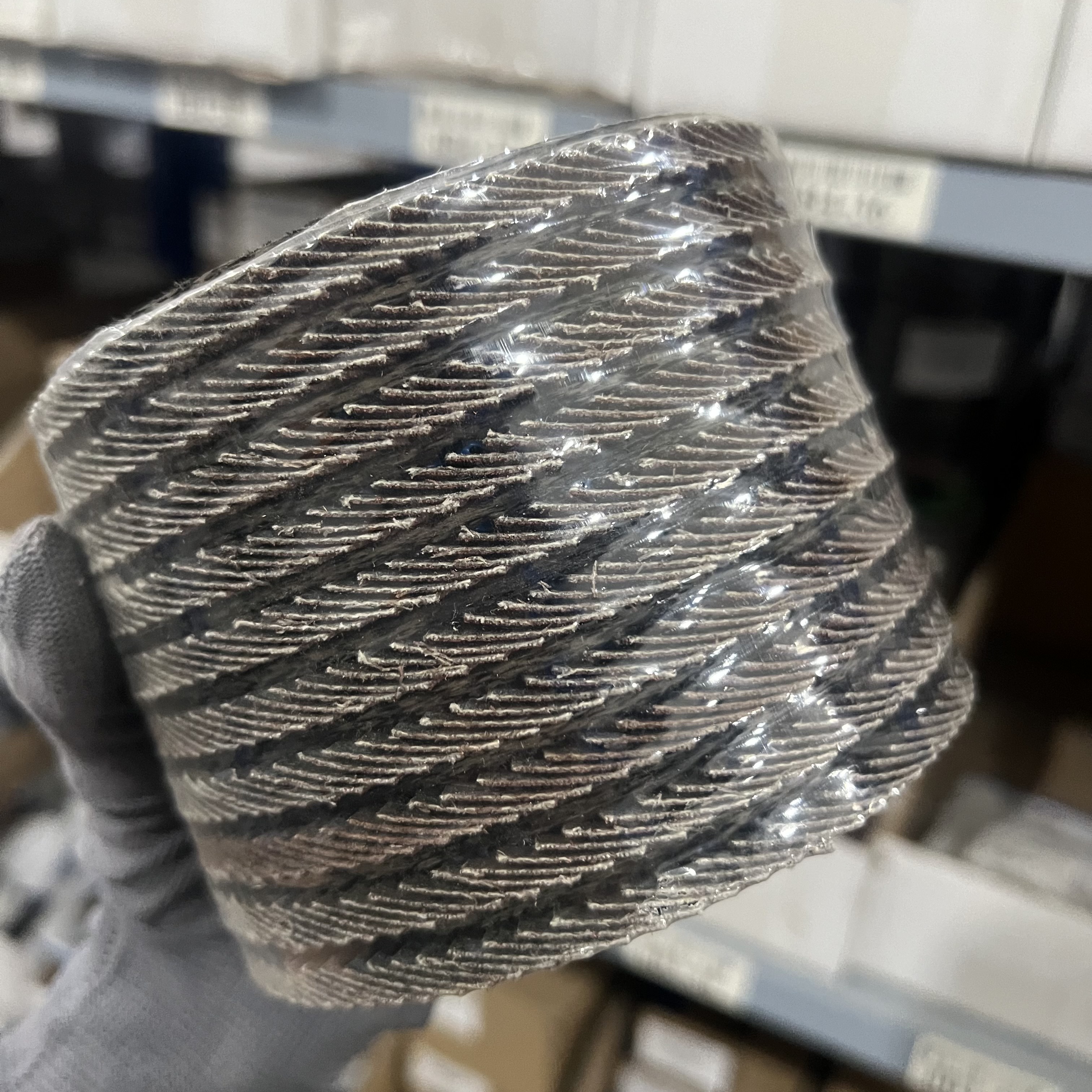 - Lớp vải nhám (Abrasive Cloth): Các lá nhám chứa hạt mài Aluminium Oxide độ hạt #80 được xếp chồng lên nhau như hình cánh quạt. Cấu trúc này giúp các hạt mài mới liên tục xuất hiện khi lớp cũ mòn đi, duy trì khả năng cắt gọt ổn định.