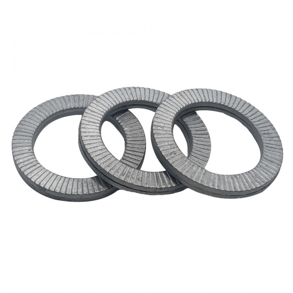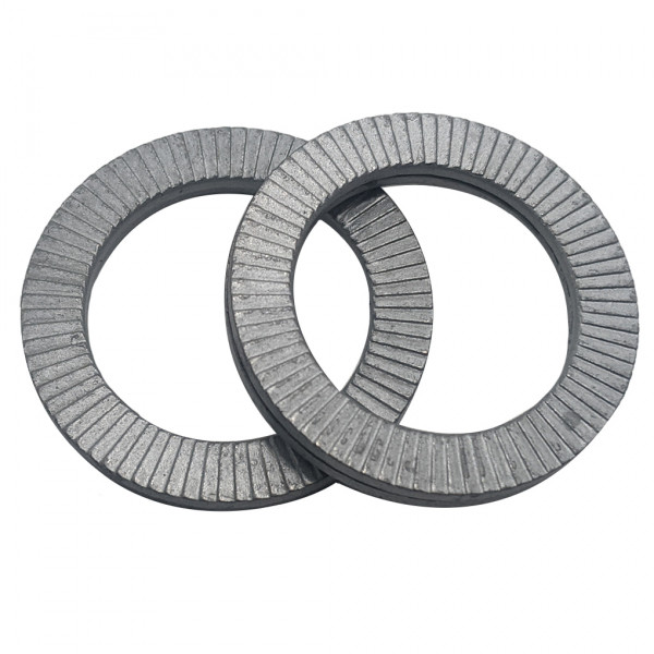 Lông Đền Nord-Lock Thép Mạ Zinc Flake Vành Rộng M5 hay còn gọi là lông đền chống xoay, có cấu tạo 2 mảnh ghép vào nhau chúng có mặt răng ăn khớp với nhau, chế tạo từ vật liêu thép carbon, sau đó mạ kẽm điện phân Cr3+, tăng khả năng chống ăn mòn. Ứng dụng trong các mối lắp bulong, đai ốc trong cụm chi tiết di chuyển, rung động dễ bị tự tháo lỏng, có khả năng chống tháo tối ưu cho các mối lắp. Ứng dụng trong việc lắp đặt thang máy, tàu điện, tàu thủy, động cơ,... Có thể tái sử dụng.