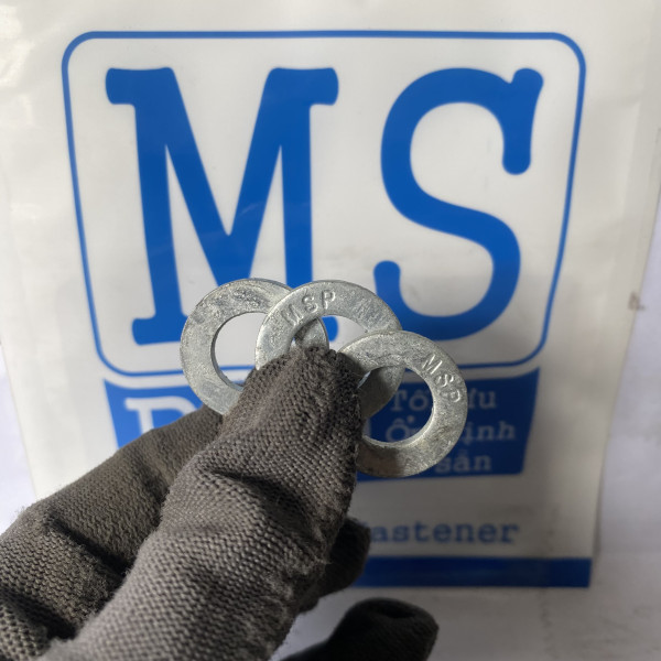 Lông đền phẳng M12 nhúng nóng chủ yếu giúp dàn trải lực và bảo vệ bề mặt. Để chống tự tháo do rung động mạnh, bạn nên kết hợp thêm lông đền vênh (vòng đệm vênh) hoặc đai ốc chống trôi (nylon nut).